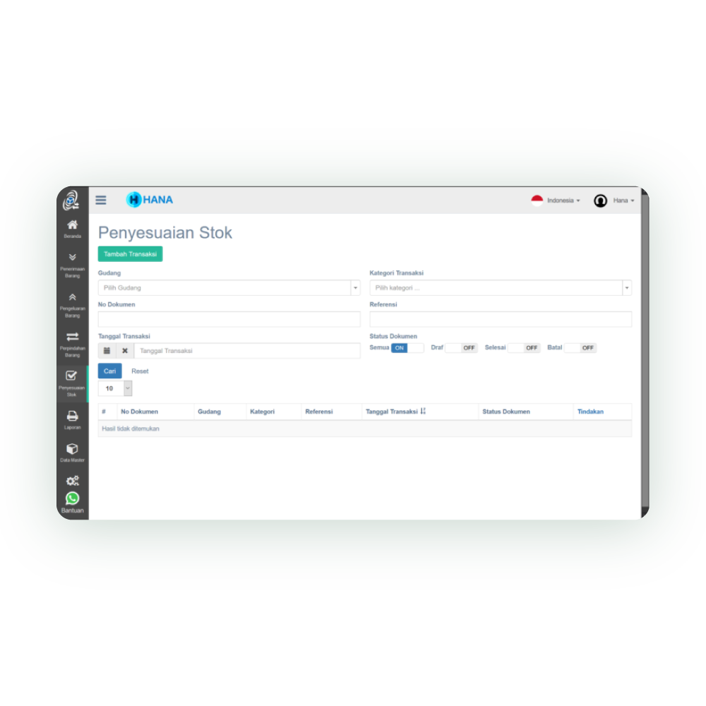 KartuStok records every item movement, including incoming goods, outgoing goods, warehouse transfers, and adjustments. From these transactions, a stock card report can be generated automatically.