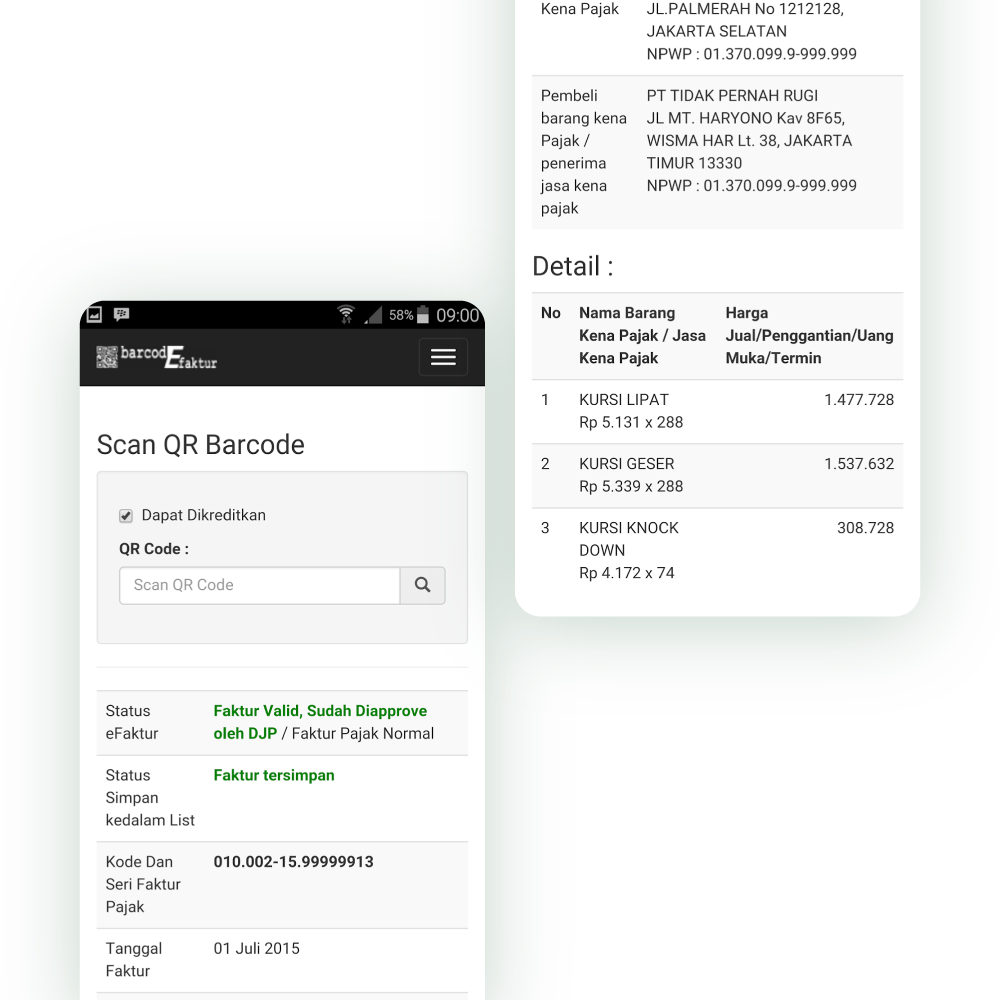 Kami menyediakan layanan pengembangan aplikasi pengelolaan Faktur Pajak Masukan yang mampu membaca QR code keluaran CoreTax secara lengkap, sehingga seluruh detail pada faktur dapat diambil, disimpan, dan diekspor ke dalam format Excel.